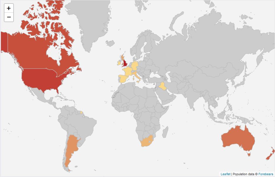 There are several resources that indicate the geographical distribution of Surnames. According to forebears.io, the global prevalence of the surname Breckon is approximately 1,460 worldwide with about 43% occuring within the British Isles.